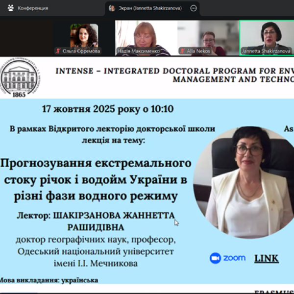17 жовтня 2025 року в межах вивчення дисциплін «Екологічний контроль та охорона водних ресурсів» (викладач Ольга ЄФРЕМОВА) і «Моделювання і прогнозування стану довкілля» (викладач Андрій… Читати далі »ВІДКРИТА ОНЛАЙН-ЛЕКЦІЯ: ПРОГНОЗУВАННЯ ЕКСТРЕМАЛЬНОГО СТОКУ РІЧОК І ВОДОЙМ УКРАЇНИ В РІЗНІ ФАЗИ ВОДНОГО РЕЖИМУ