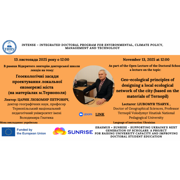13 листопада здобувачі ОП Екологія першого (бакалаврського) рівня вищої освіти, гр.ЕКОЛ-23 та ОП Середня освіта (Біологія та здоров’я людини) першого (бакалаврського) рівня вищої освіти, гр. СОБ-22 долучились до… Читати далі »ВІДКРИТА ЛЕКЦІЯ «Концептуальні і прикладні засади формування регіональних та локальних схем екомереж»