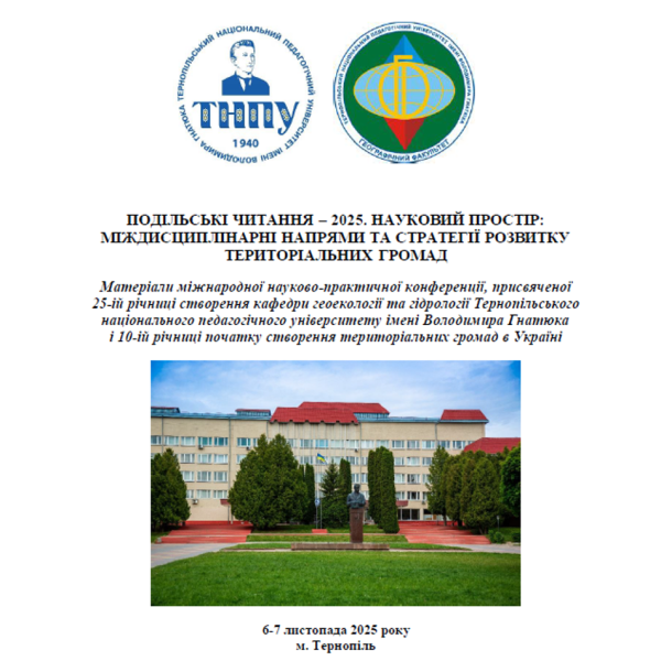 6-7 листопада на географічному факультеті Тернопільського національного педагогічного університету імені Володимира Гнатюка проходила ХІ Міжнародна науково-практична конференція «Подільські читання-2025 «Науковий простір: міждисциплінарні напрямки та стратегії розвитку територіальних… Читати далі »НПК «ПОДІЛЬСЬКІ ЧИТАННЯ 2025»