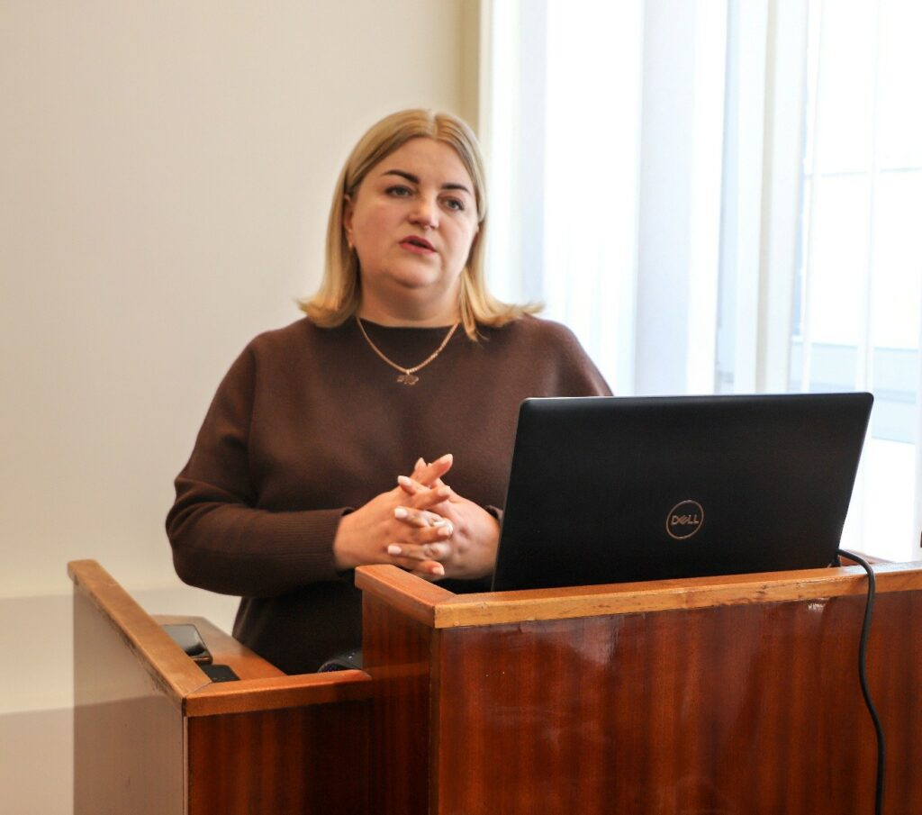 Продовжила тему розвитку жіночого лідерства, начальниця відділу міжнародних зв’язків Людмила Ремішевська. Вона розповіла про серію тренінгів для жінок-лідерок, де учасниці працювали над розвитком внутрішніх ресурсів і комунікаційних навичок, вчилися ефективніше планувати роботу та ухвалювати управлінські рішення, а також зміцнювали здатність зберігати резилієнтність і мотивацію в умовах постійних викликів. Як зазначають учасниці, ця програма допомогла їм краще усвідомити власний потенціал, впевненіше почуватися у професійній ролі та знайти підтримку серед колег.