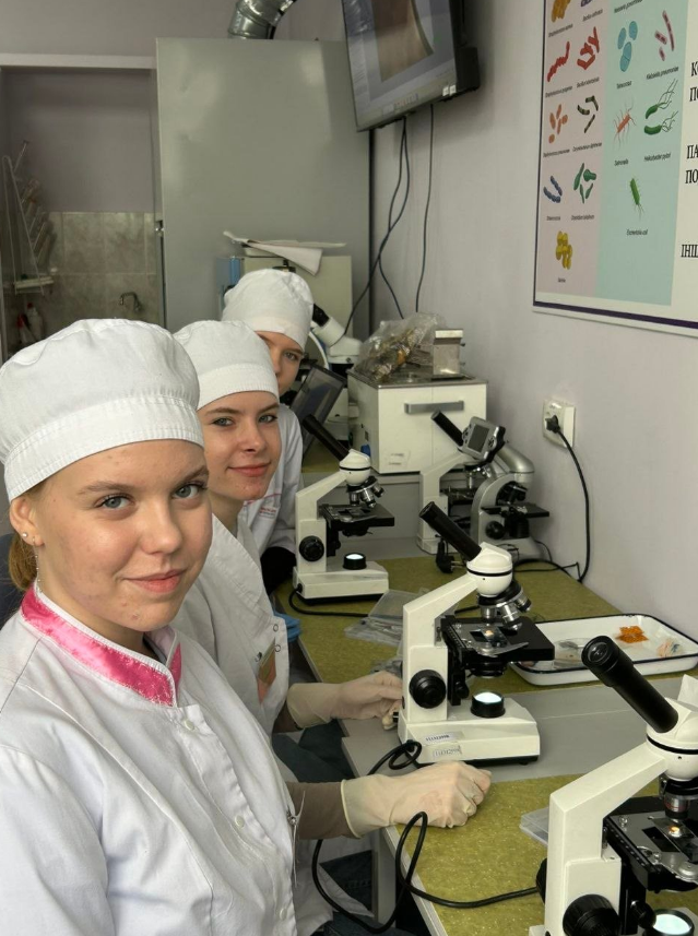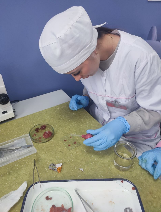 В межах вивчення дисциплін «Паразитологія» (викладач – завідувачка лікувально-акушерського відділення Наталія Чорна) та «Основи цитології, гістології та ембріології» (викладач – доцент кафедри, кандидат педагогічних наук, доцент, гарант освітньої програми «Середня освіта (Біологія та здоров’я людини)» першого (бакалаврського) рівня Сергій Скрипник) було проведено лабораторний практикум, під час якого здобувачі освіти закріпили знання щодо: будови мікроскопа та правил роботи з ним; техніки безпеки під час роботи з препарувальним інструментарієм; цитолого-гістологічної будови печінки та шлунка; методики виготовлення гістологічних зрізів (свинячої печінки, курячих шлунків – органів, у яких можуть розвиватися різноманітні гельмінти).