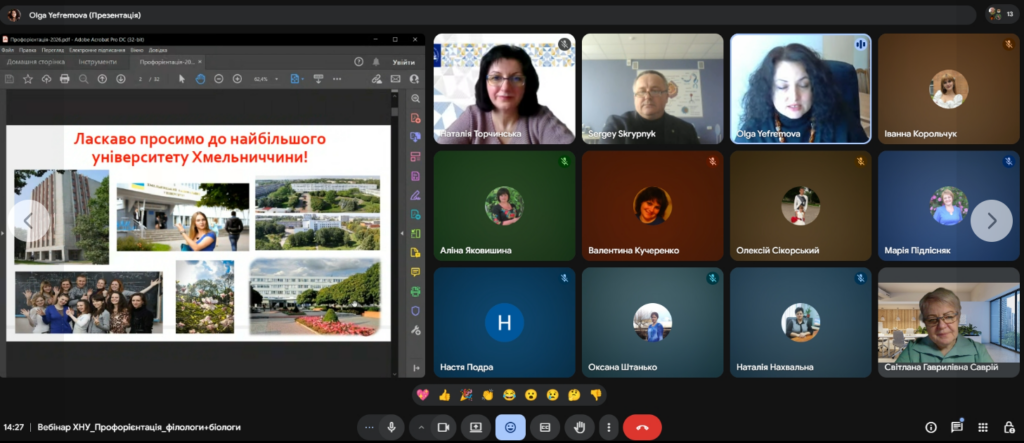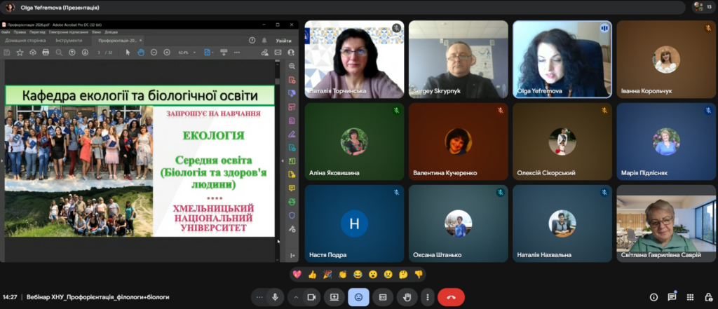 9 квітня 2026 року представники кафедри екології та біологічної освіти та кафедри слов’янської філології гуманітарно-педагогічного факультету Хмельницького національного університету провели онлайн-зустріч з учнями Охрімовецького, Осламівського, Майдано-Олександрівського, Віньковецького та Дашковецького ліцеїв Віньковеччини.
