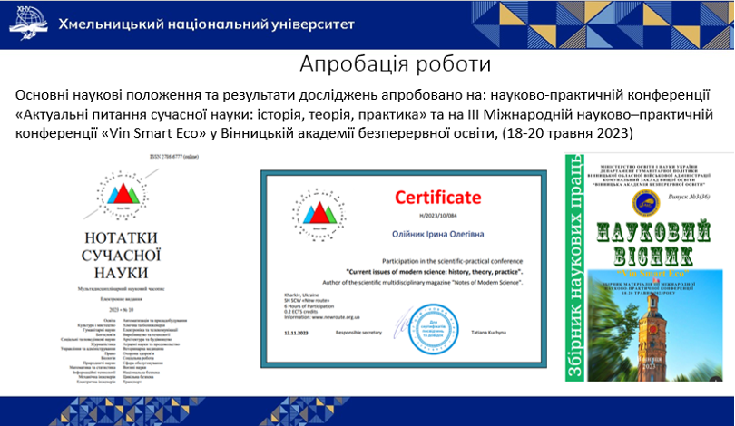 Свої напрацювання представила студентка групи СОБм-22-1 спеціальності «Середня освіта (Біологія та здоров’я людини)» Ірина Олійник, яка обґрунтувала ефективність використання карток у 6 класі та підтвердила їх результативність експериментальним шляхом.