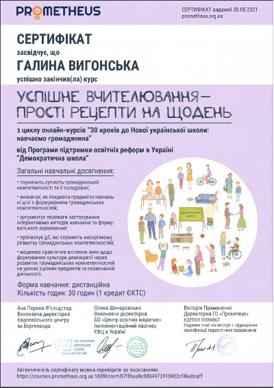 Сертифікати за проходження онлайн-курсу “Успішне вчителювання – прості рецепти на щодень”