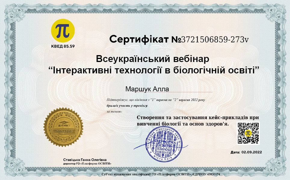 Сертифікати за Всеукраїнський вебінар “Інформаційні технології в біологічній освіті”